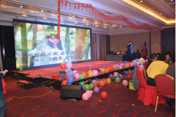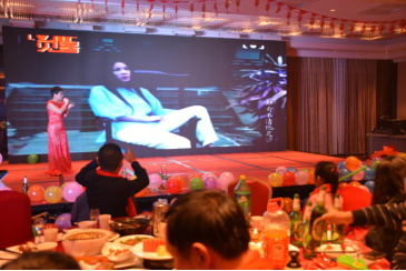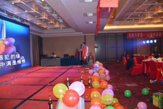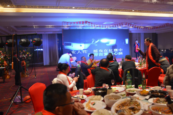臺下一桌桌豐盛的晚餐、彼此舉杯同賀、相互祝愿。公司領導與員工親情互動、激動人心的砸金蛋活動、搶錢大賽、吹瓶比賽......