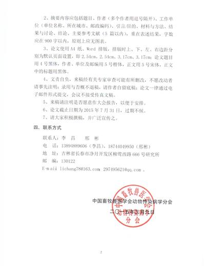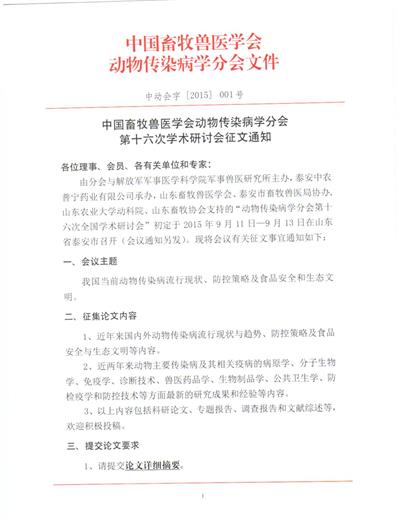 由公司承辦的中國畜牧獸醫(yī)學(xué)會動物傳染病分會第十六次學(xué)術(shù)研討會征文通知
