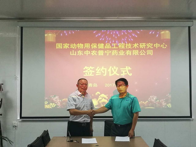 6月22日公司康總、技術總監(jiān)王總青島一行與三大國家級研發(fā)中心之一的"國家動物保健品工程技術研究中心”簽定戰(zhàn)略合作協(xié)議,該中心由100多名博士組成的研發(fā)團隊,在生物制品,動物藥品,保健品,酶制劑,微生態(tài)制劑等領域均有重量級領軍人物。本次合作,為公司在相關領域產(chǎn)品的產(chǎn)品研發(fā)提供了堅強保障,為中農普寧向技術型集團公司轉型奠定了雄厚的研發(fā)基礎。
