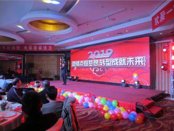 公司領(lǐng)導(dǎo)、公司部分友好人士、全體員工120余人參加了晚會。晚會以公司回顧2018《激情點燃夢想 轉(zhuǎn)型成就未來》拉開了序幕。