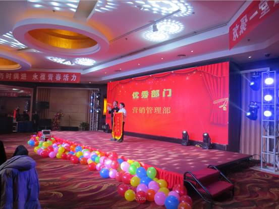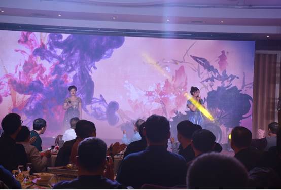 臺下一桌桌豐盛的晚餐、彼此舉杯同賀、相互祝愿。公司領(lǐng)導(dǎo)與員工親情互動、歌聲、掌聲、歡呼聲一直在晚會現(xiàn)場蕩漾。