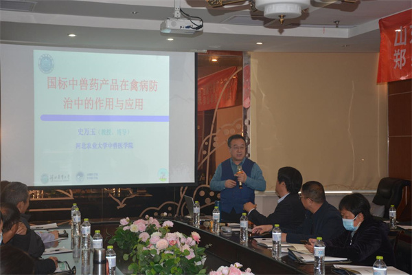 25日上午,第五屆中獸醫(yī)學(xué)習(xí)班在凱里亞德大酒店正式開始,公司技術(shù)總監(jiān)王金紀(jì)主持了本次學(xué)習(xí)培訓(xùn),并向大家介紹了本次活動(dòng)的授課嘉賓和日程安排。首先由公司技術(shù)顧問、行業(yè)著名專家、河北農(nóng)業(yè)大學(xué)史萬玉教授為大家?guī)砹恕秶鴺?biāo)中獸藥產(chǎn)品在禽病防治中的作用與應(yīng)用》的技術(shù)講座。史教授針對(duì)當(dāng)前養(yǎng)殖中面臨的常見疾病,從中醫(yī)角度對(duì)疾病的發(fā)病原因與預(yù)防治療措施等進(jìn)行了詳細(xì)講解。