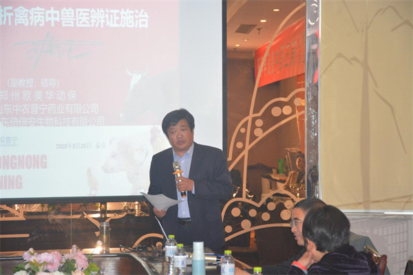 隨后,公司技術(shù)總監(jiān)王金紀(jì)帶來了《簡析禽病中獸醫(yī)辨證施治》的技術(shù)報(bào)告,在報(bào)告中,王總將中醫(yī)與西醫(yī)融合在一起,以中西醫(yī)結(jié)合的方式為大家?guī)砹艘粓?chǎng)精彩的講座。在授課過程中,針對(duì)大家在養(yǎng)殖及公司產(chǎn)品使用過程中遇到的問題,王總與大家進(jìn)行了現(xiàn)場(chǎng)的交流,通過面對(duì)面交流,許多困擾大家許久的問題紛紛迎刃而解。