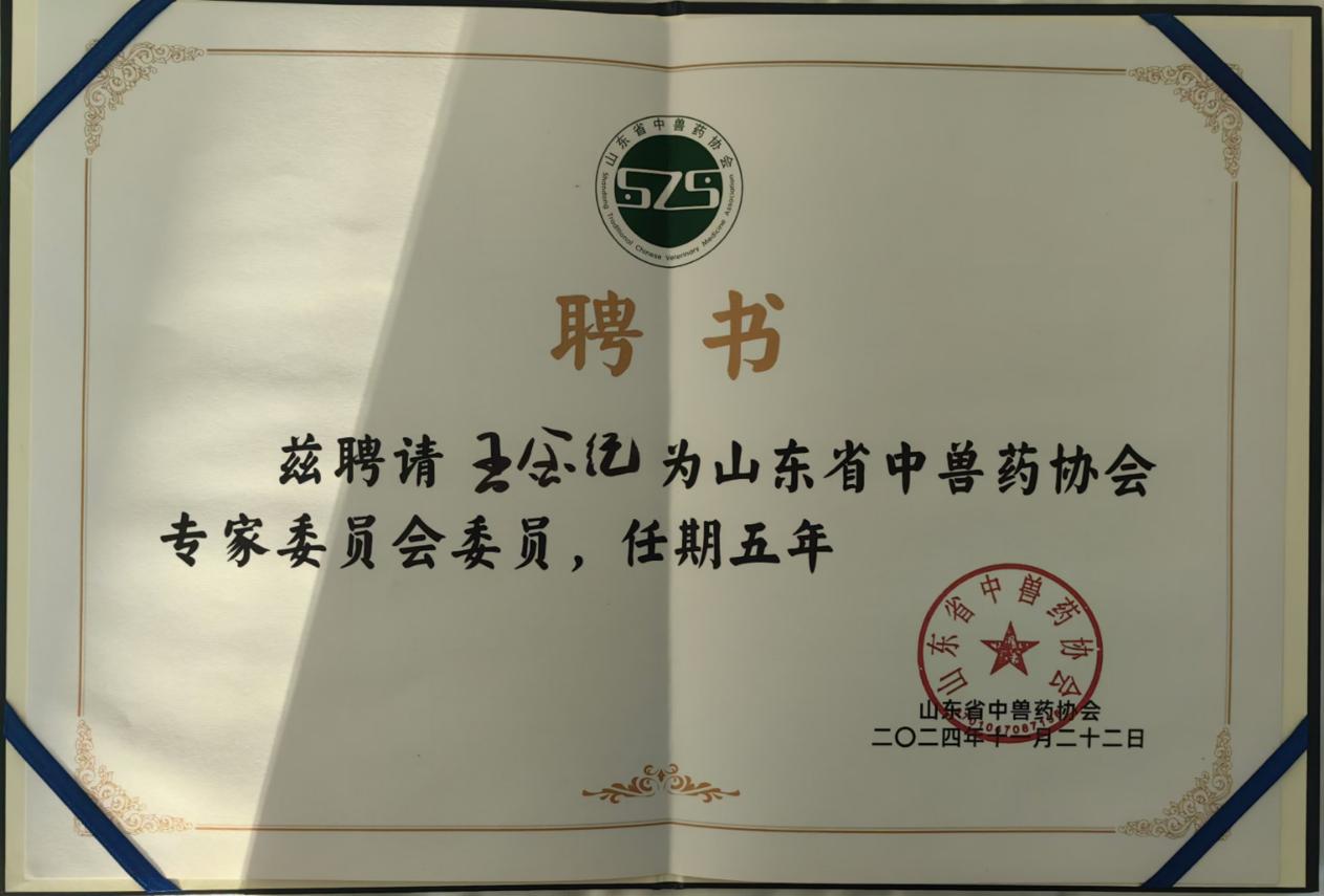 本次會(huì)議還選舉產(chǎn)生了會(huì)長、副會(huì)長等多家單位,并確定了秘書長、監(jiān)事長等人選,我公司技術(shù)總監(jiān)王金紀(jì)被聘請(qǐng)為山東省中獸藥協(xié)會(huì)專家委員會(huì)委員。