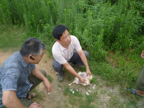 7月19日,公司總經(jīng)理康總、技術(shù)總監(jiān)王總與湖北省京山縣錢場(chǎng)養(yǎng)雞協(xié)會(huì)達(dá)成合作協(xié)議之后,又立刻奔赴湖北蘄春縣一家蛋雞場(chǎng)做技術(shù)指導(dǎo)。經(jīng)過(guò)細(xì)致觀察,耐心尋問(wèn),剖檢,最終找出了發(fā)病原因,及時(shí)將蛋雞場(chǎng)的損失降到了最低。