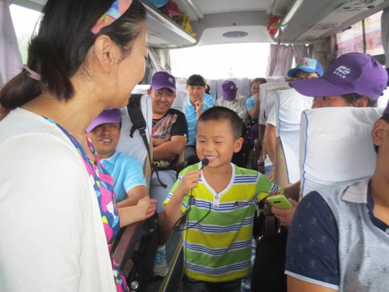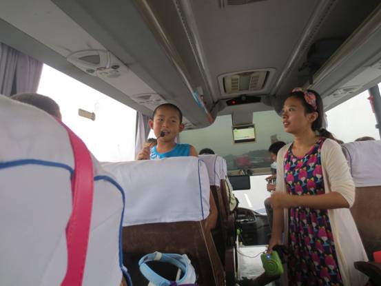 早餐過后在美女導游的主持下,人力資源部的調(diào)動下以一首滾滾長江東逝水開啟了節(jié)目表演接力時段,唱歌、笑話、腦筋急轉(zhuǎn)彎、舞蹈、古詩、三字經(jīng)、出師表等豐富的節(jié)目呈獻給了大家,孩子們也成為重要的演員之一,大家參與度極高一路上歡聲笑語一點也感覺不到時間過得很快。