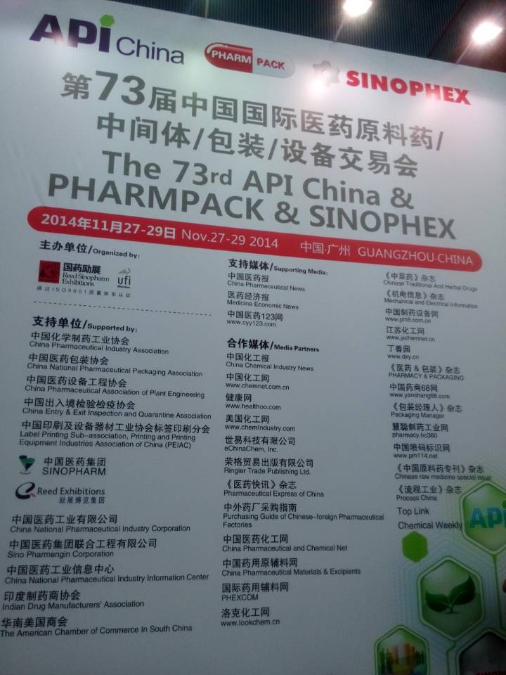 11月27-29日,第72屆全國藥品交易會(huì)將在中國進(jìn)出口商品交易會(huì)展館(廣州琶洲)舉辦,大會(huì)同期召開第73屆中國國際醫(yī)藥原料藥/中間體/包裝/設(shè)備交易會(huì)和2014中國(廣州)保健節(jié)/第14屆中國國際保健博覽會(huì)。此次展出面積超過 12萬平米,將有來自海內(nèi)外3500 多家企業(yè)攜8 萬多種精品展出,展品覆蓋上下游技術(shù)/產(chǎn)品研發(fā)、醫(yī)藥制劑、原料藥、化工產(chǎn)品、醫(yī)藥包裝、制藥設(shè)備、健康保健產(chǎn)品等醫(yī)藥領(lǐng)域的全產(chǎn)業(yè),全面展示當(dāng)今世界醫(yī)藥行業(yè)最新產(chǎn)品和技術(shù)以及發(fā)展趨勢(shì)。吸引了超過10 萬名海內(nèi)外醫(yī)藥行業(yè)精英齊聚廣州,公司康總、王總參加參加本次盛會(huì)。